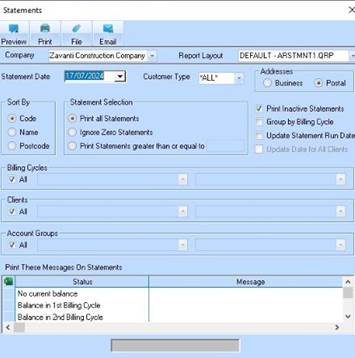 Business or Postal address selection for Accounts Receivable Statements