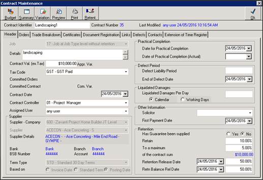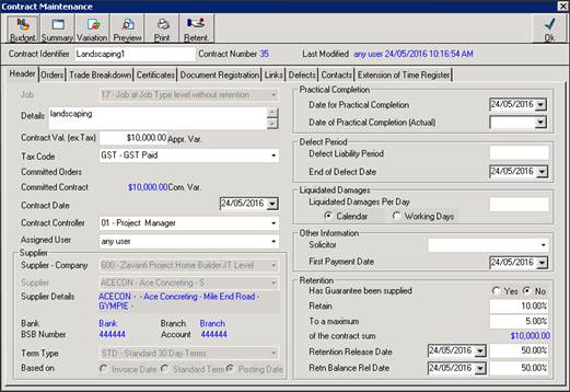 The steps above should be done as soon as the user has created the Contract and before any Progress Claim Certificates are generated. |