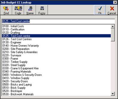 4. Click on the Add Line button and a Cost Centre lookup box will be displayed