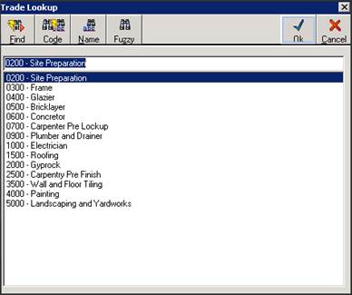9. Select the required Trade from the Lookup