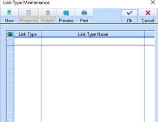 1. Select a menu path of Maintenance Ø Link Types. The following window will be displayed:
