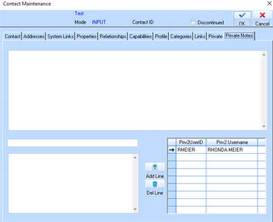 23. Press the Private Notes tab. The following window will be displayed: