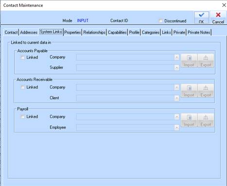 9. If you need to link the record to another existing record, this window allows you to do this. An example of why this would be useful is if you captured details at both an Individual and Company level, you could link the individual to the Company.