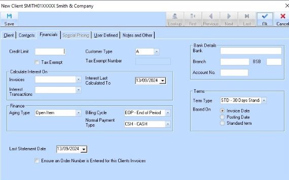 19. The Ensure an Order Number is entered for this Client’s invoices checkbox Tick this Box if you would like to make sure that an order number is entered for this Client’s Invoices. When processing invoices if the order number is not entered you will not be able to proceed without it.