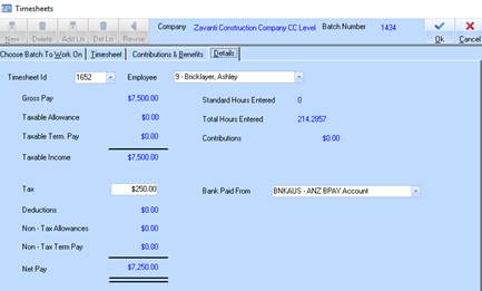 5. Calculate the TAX (externally) as per the ATO Guidelines and enter it manually on the DETAILS TAB as shown