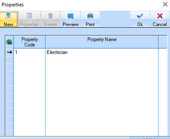 2. To create a new Property code, select the New button. The following dialogue box will be displayed: