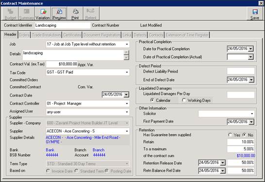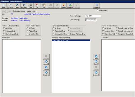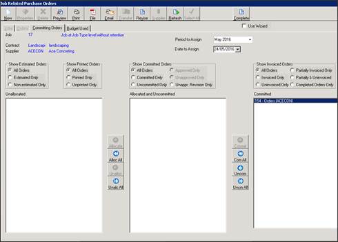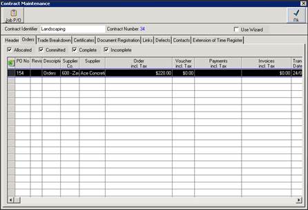 When creating the main Contract header you will notice that there is no budget allocated at the time. If there was a commitment it would show in blue text as the Committed Orders on the Contract Header Screen. Purchase Orders are generally raised and committed for Materials and not sub contracts or for other services where a contract is not required. There is no reason why the user cannot raise and print a purchase order for the contract if required, just leave it as Uncommitted