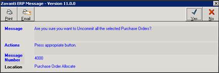 4. Highlight the Purchase Order and click on the “Uncom” arrow and a message will be displayed