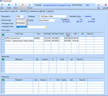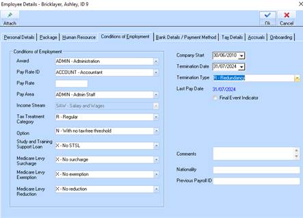 Termination Date has now been added to individual employee timesheets. This detail will embed the Termination Date and Final Event Indicator in the Single Touch Payroll file and will also update the properties of the Employee as part of the Finalise Pay Run process.