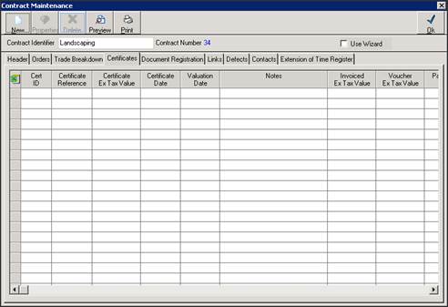 5. Select the Contract that we want to enter the progress claim for, and click Properties