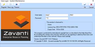 In order to access the PINT maintenance functionality, a pre-defined user name and password must be entered in each module where PINT functionality is to be used and details are to be maintained.