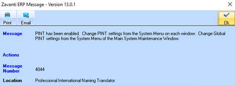 The PINT functionality will then be available within that module as shown in the following sections of this document