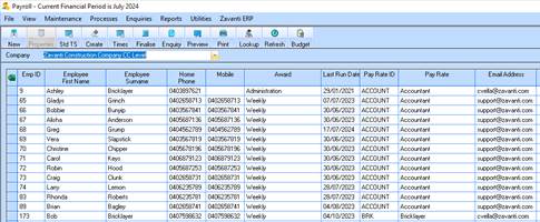 The Payroll Main Menu displays information about employees selected, including the employee Pay Rate ID and Description on.