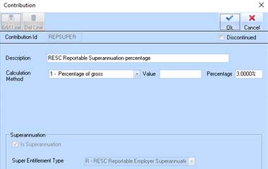 Users will need to ensure that the RESC (Reportable Employer Superannuation Contribution) box is checked in the Contributions Maintenance to ensure correct tax reporting.