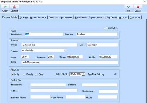 3. Note that these details include the employees email address to allow emailing of payslips.