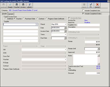 8. Select the Supplier and Voucher number using the drop down selection. The invoice details will be populated