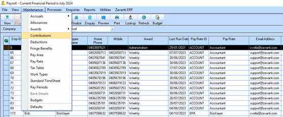 4. Create a new Contribution from the Maintenance menu selection on the front screen in the Payroll Module.