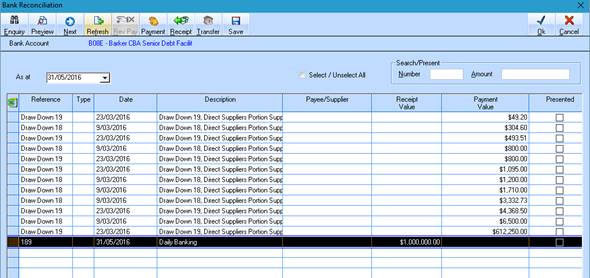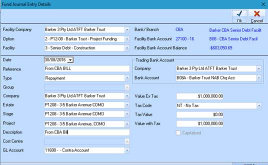 10. A ‘Dummy’ Payment, to a NON Facility account, has been processed to the selected ‘Trading Bank Account’. This will be reversed by the corresponding Repayment Journal to the BILL
