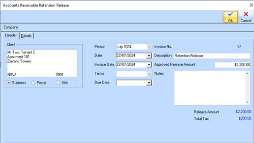16. When the client pays for the retention release the Receipt is dissected to the DRJ transaction.