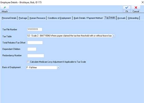 •Data from the ‘Tax Details’ tab is passed to the Single Touch Payroll file.