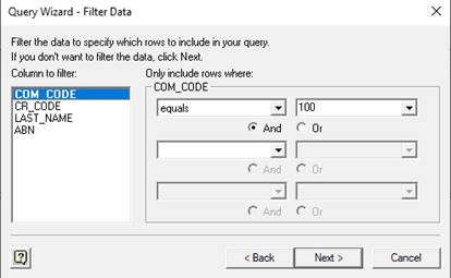 12. In this example we will select only those records where the Company is 100 i.e. COM_CODE = ‘100’