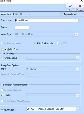 When creating the Work Types, a selection “Is OTE” is available. This enables the work types to be added to the required disclosure in the Single Touch Payroll reporting file.