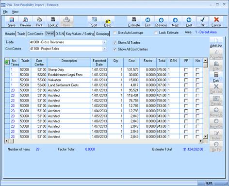1. The user will now be able to review the imported Estimate Data.