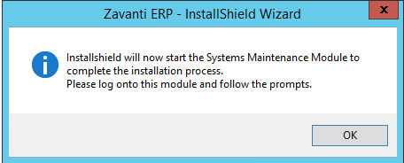 5. On completion of the install. you will be prompted to run the ‘System Maintenance’ module