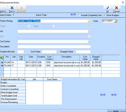If costs have been entered to the wrong job, the easiest way to transfer them to the correct job once they have been paid is to do a “Disbursement Entry” which is a journal adding costs to one job and taking it out the other.