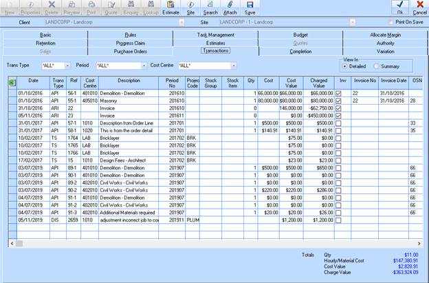 10. Transaction will show on Job Transactions tabs and reports as a ‘DIS’ trans type