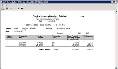 This report is NOT able to be submitted to the ATO. Please refer to ATO website on the required form for submission to the ATO http://www.ato.gov.au/content/downloads/BUS00321342n74109.pdf |