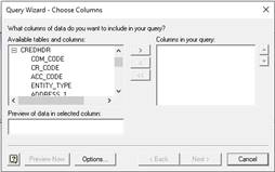 7. A list of the Columns in this table will appear. To select a column (and thus have the appropriate data appear on your Excel spreadsheet) highlight the column and press the arrow pointing to the right (>) to shift the column into the window on the right.