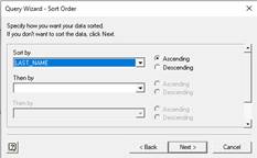 10. If you would like the information sorted in a particular order, enter the ‘SORT BY’ criteria here. Otherwise, click ‘Next’.