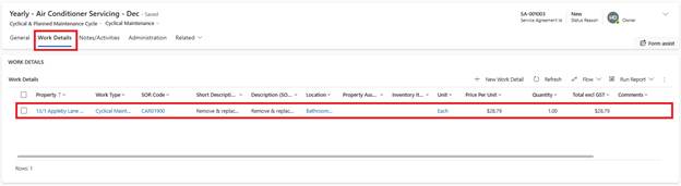 2. In General tab, Properties section, click Add Work Detail