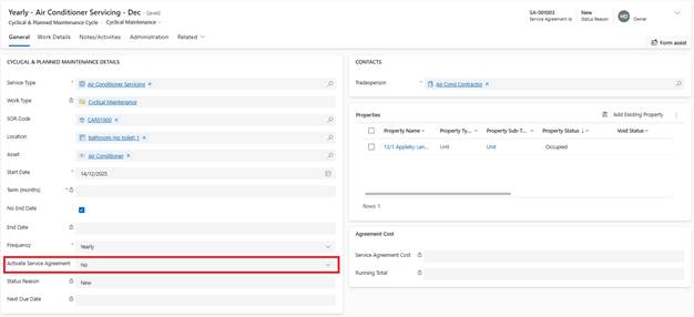 •Service Agreement Status: Active