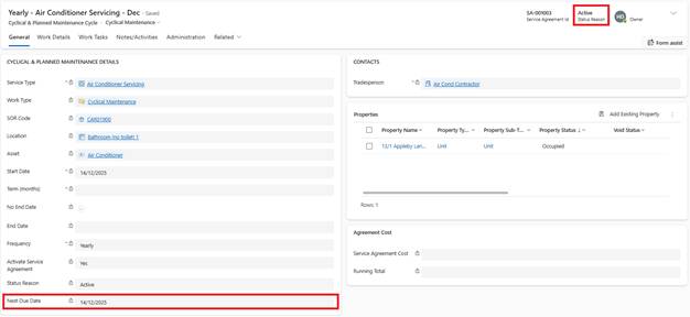 •System will auto-generate next batch of Work Tasks on Next Due Date