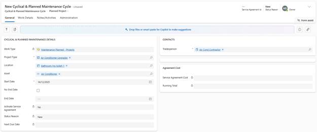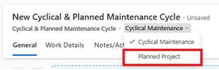 4. Work Type: Defaults to ‘Planned Projects’ (or configured planned work type)