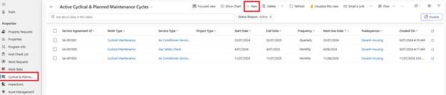 1. Navigate to Cyclical and Plant in left navigation