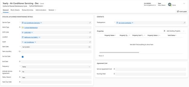 Service Agreements generate Work Tasks automatically at specified intervals.