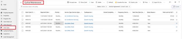 2. Apply filter: ‘Cyclical Maintenance’ view (or create custom view)
