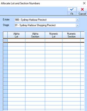 When creating a Stage or Lot you can flag a stage as an Alpha Stage if you do not yet know the numeric codes issued with Title. This function allows you to change all of the lots within an alpha stage to numeric lots (when you have been assigned the lot codes from the statutory body) and at the same time mark the stage as a Numeric stage. As well as the primary lot information being changed to the new numbering, all the associated transactions will be moved to the new coding. This will include sales, costs, prices, cost of sales accruals etc.