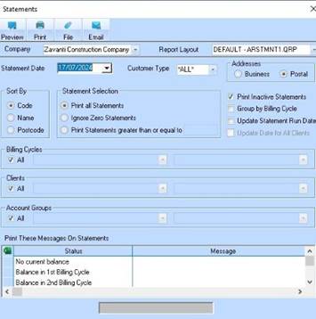 Business or Postal address selection for Accounts Receivable Statements
