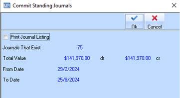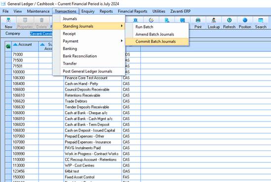 1. Select Transactions/Standing Journals/Commit Batch Journals