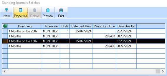4. The Standing Journal Batch Maintenance has now updated the Date Due On