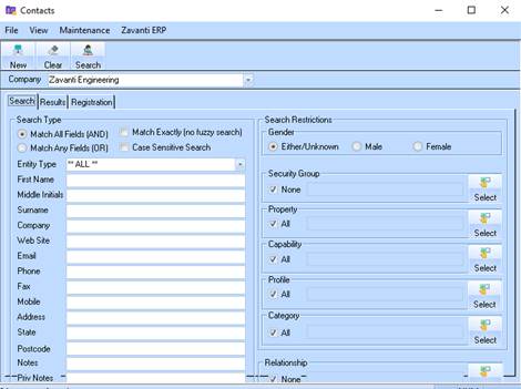 The Contacts module allows you to record and maintain client and contact master data. The Contacts module also provides you with a wide range of search criteria parameters.