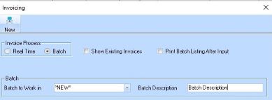 2. Select the Invoice Process Batch radio button. The following dialogue box will be displayed: