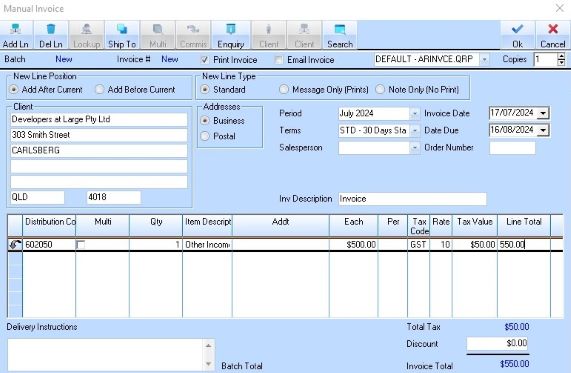5. Enter details of the line item and press the OK button.