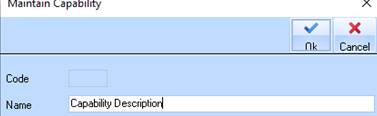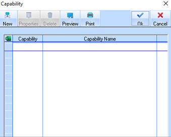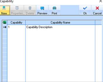 2. To create a new Capability, select the New button. The following dialogue box will be displayed: