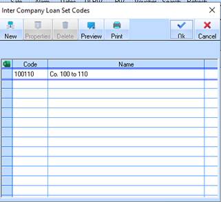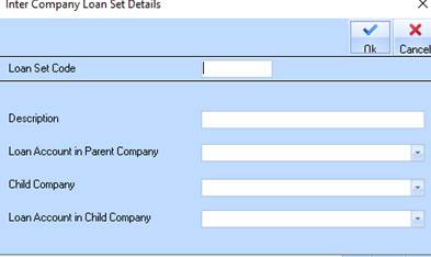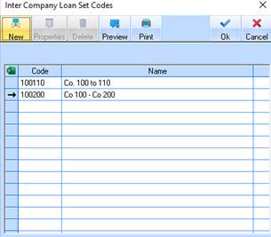 3. To create a new Inter Company Loan Set Code, press the New button. The following window will be displayed: