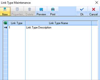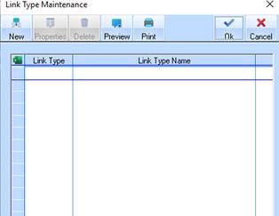 1. Select a menu path of Maintenance Ø Link Types. The following window will be displayed: